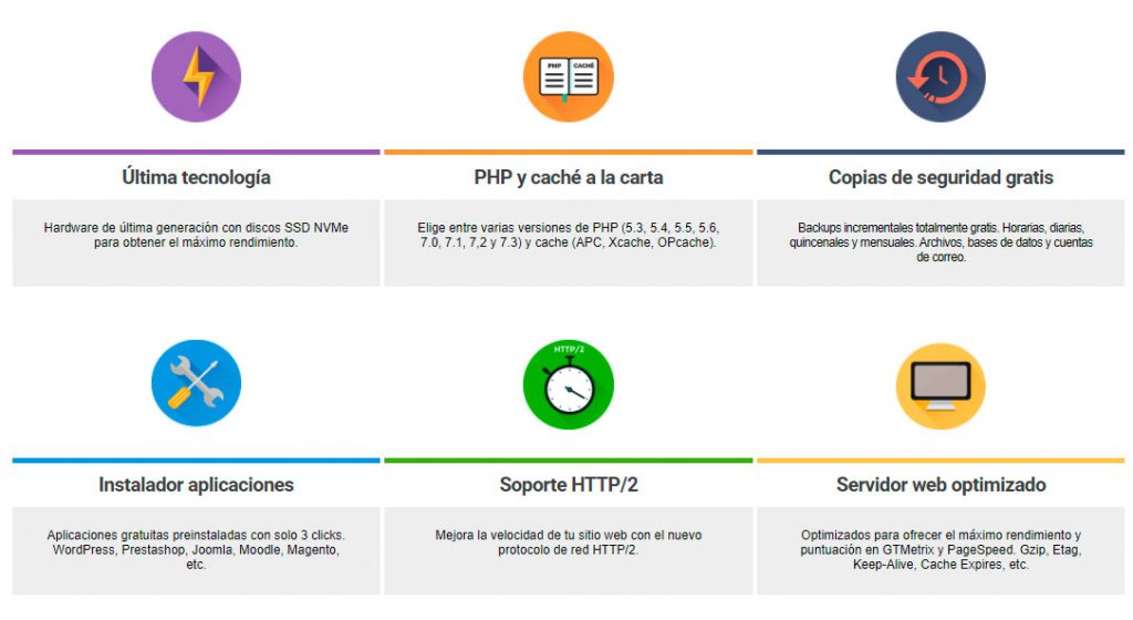 Alojamiento recomendado para sitios web con bases de datos y programación con PHP. Dispone de gran variedad de módulos, gran capacidad seguridad anti-DDoS y Aceleración GeoCaché 3 PoP.