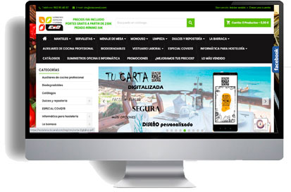 Suministros para hostelería. Desarrollada en Prestashop, instalación de varios módulos de pago como Pay Pal o TPV de Redsys, carritos abandonados, chat, .
